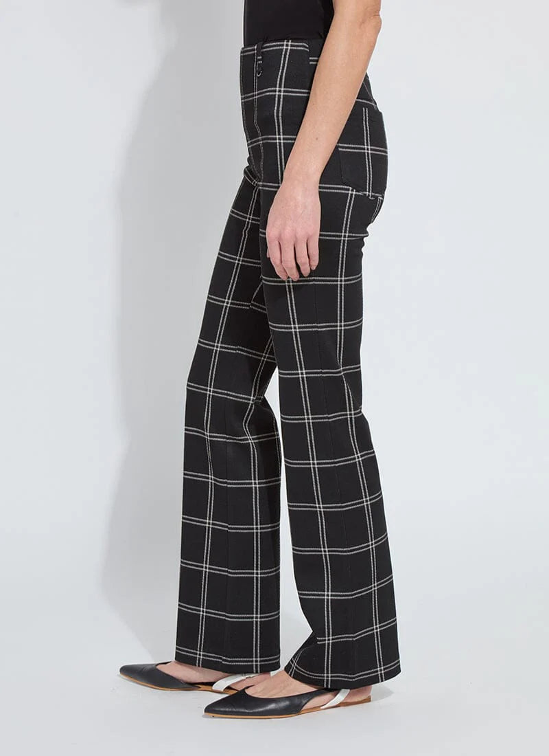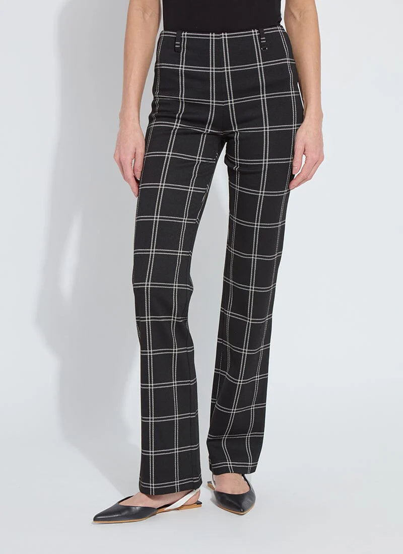 Crafted from 4x-stretch Ponte Jacquard, our Patterned Baby Bootcut pant offers pull-on styling, a concealed patented waistband, studded back pockets and all-day support, shaping and resiliency. These slimming bottoms skim the hips and thighs before falling into an open bootcut leg. Created using a tightly woven Ponte Jacquard, these work or leisure bootcut pants feel snugger than our Ponte Baby Bootcut pants, so size up if you’re in between sizes. Style with Lysse's Adette V-Neck Longsleeve and the Alma Cavalry Peacoat.