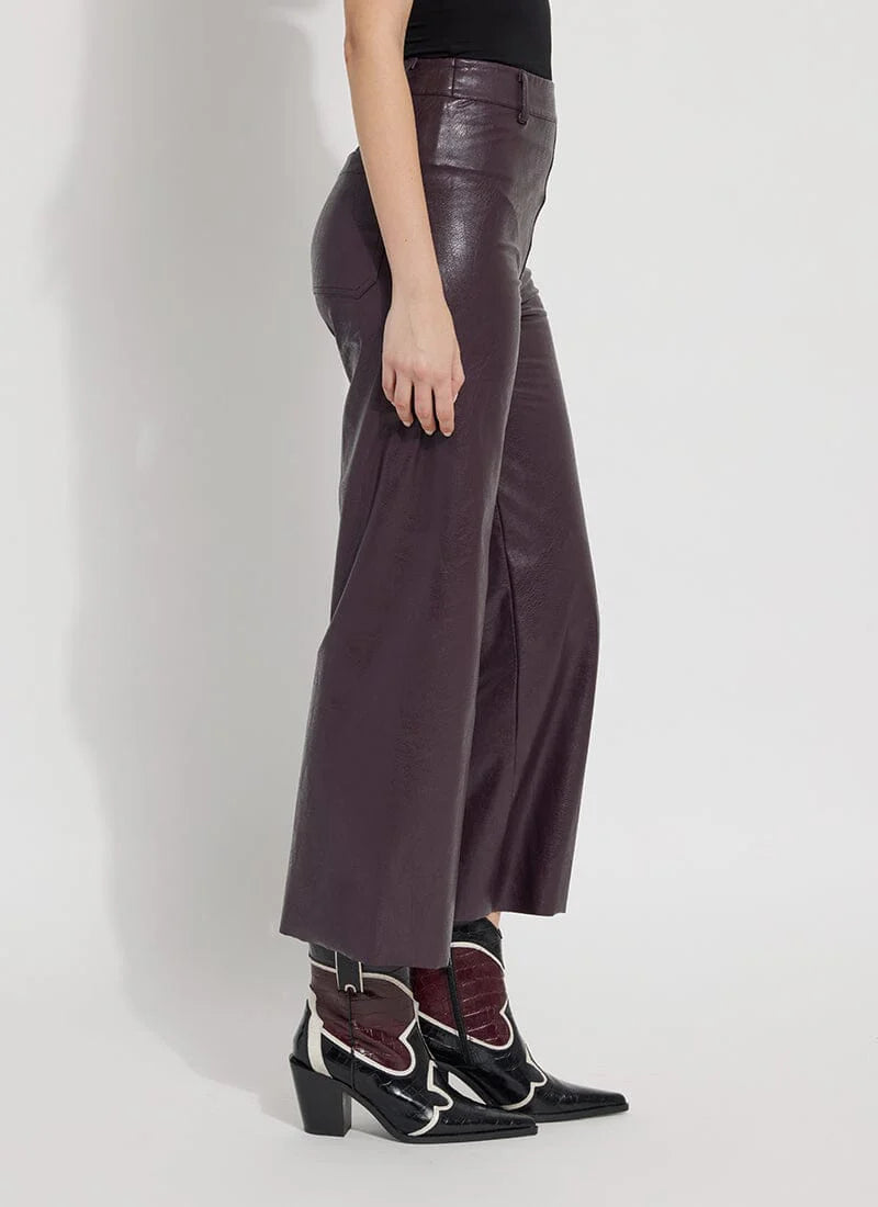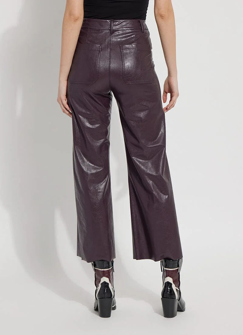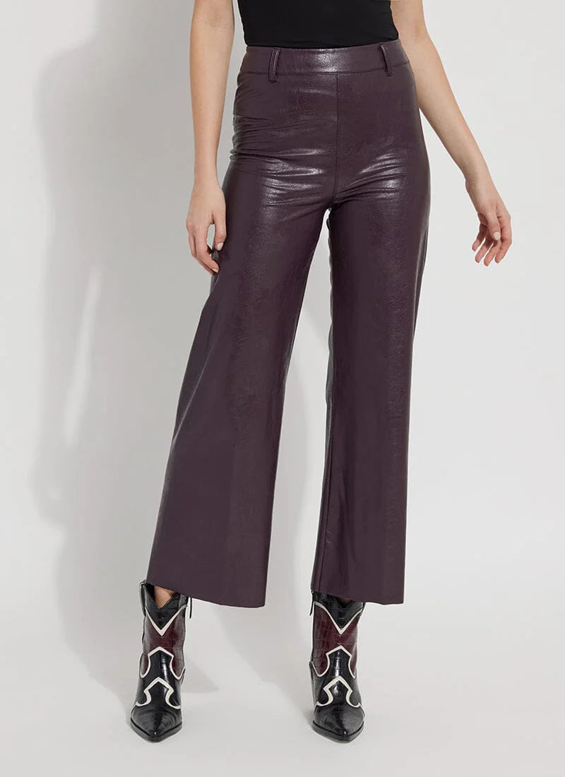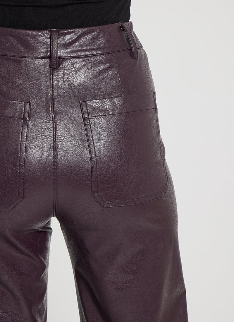 The Hi Waist Vegan Leather Wide Leg pant is fitted at the waist and hip before falling into a wide, ankle-length leg. Made from 4-way stretch Textured Vegan Leather, these wide-legged pants feature a concealed patented waistband, beltloops, patch pockets and no side seam for a slimming look. A raw-edge hem makes them simple to shorten. Partner these faux leather wide-leg pants with Lysséntial Long Sleeve and Amelia Moto Vegan Suede Jacket.