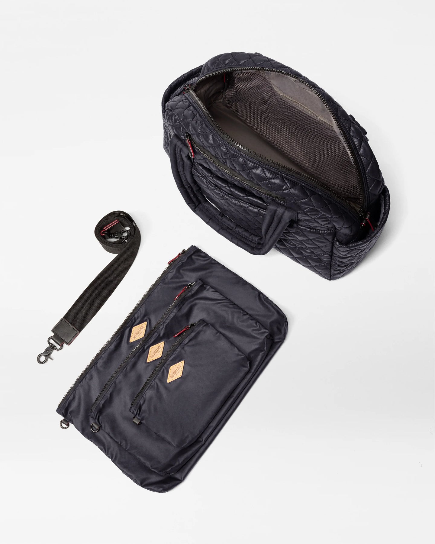 • Detachable, adjustable nylon crossbody strap