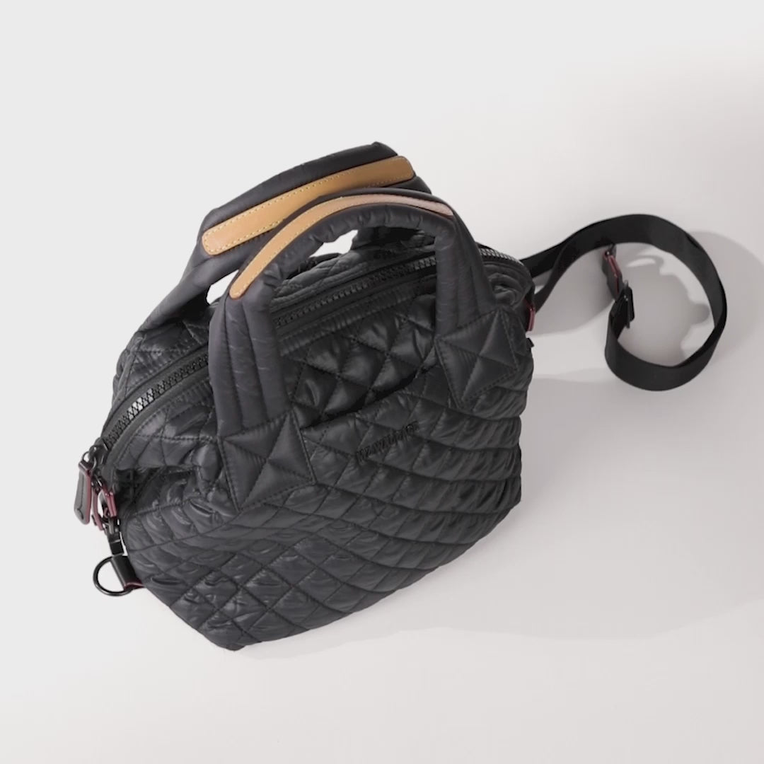 The Small Sutton Deluxe is designed to keep things light without leaving anything behind—quilted REC Oxford nylon, Italian leather trim, and a shape that moves easily from day to night. Inside, six pockets, two exterior slips, a detachable pouch, and an adjustable strap keep it ready for whatever’s next.