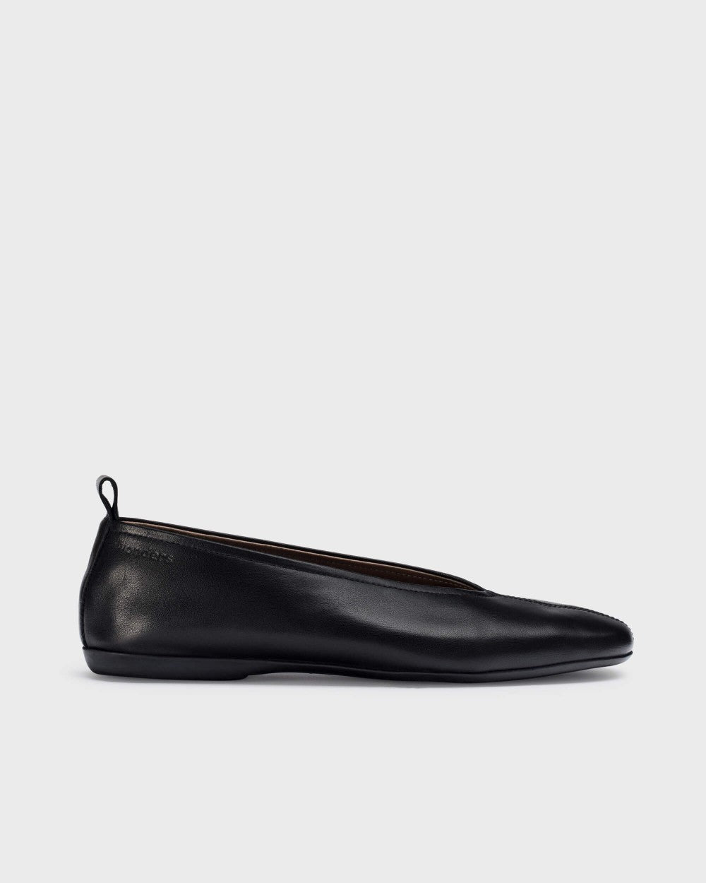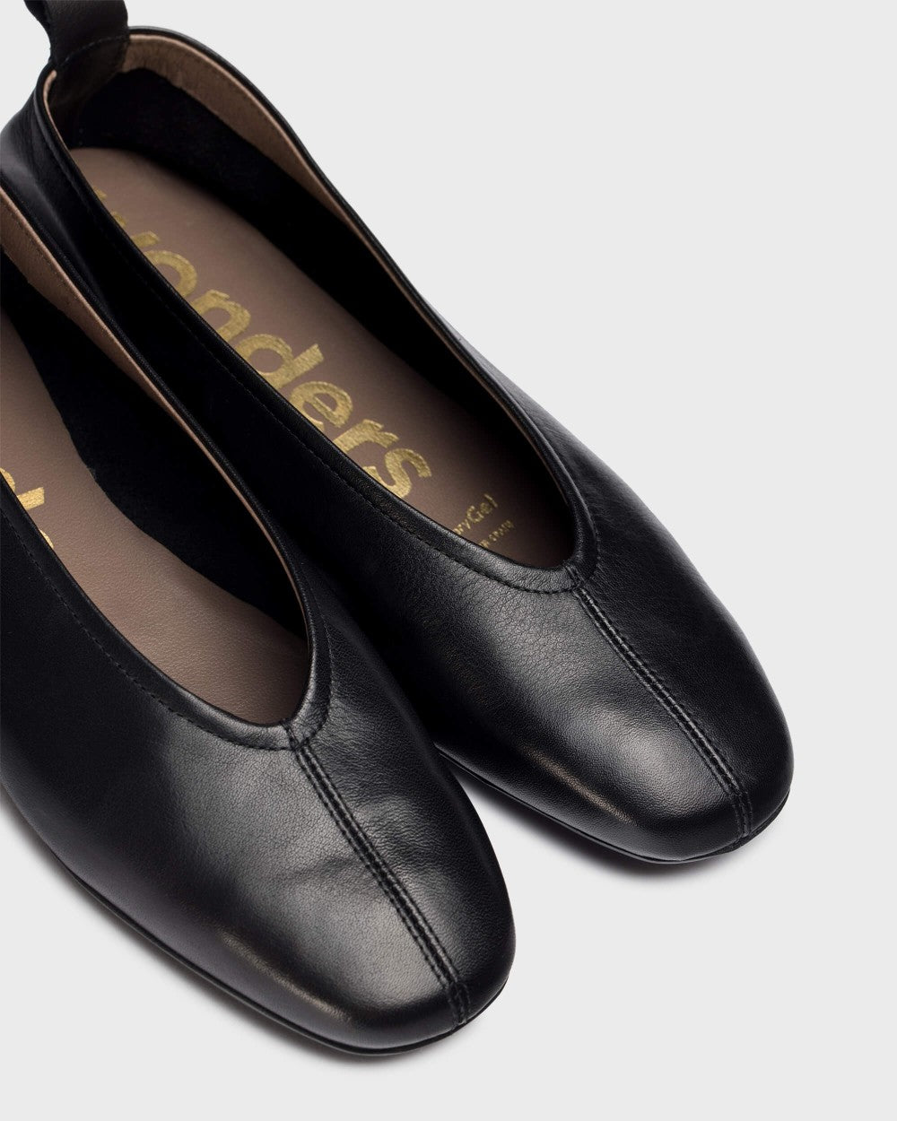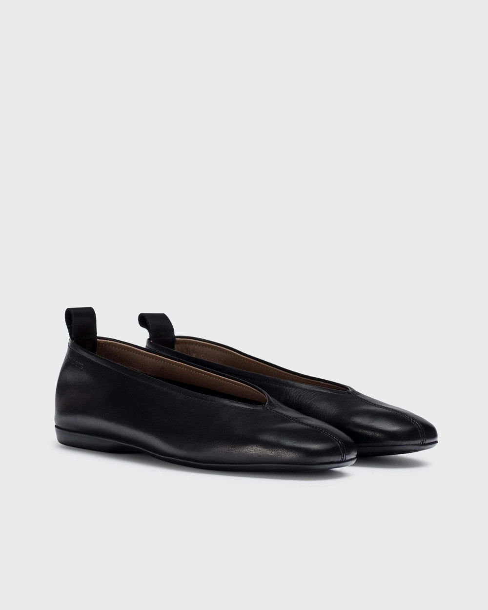Women's black ballet pump. This casual round-cut flat ballet pump has double stitching and a pull tab for an easy fit. 100% Made in Spain by artisan hands.