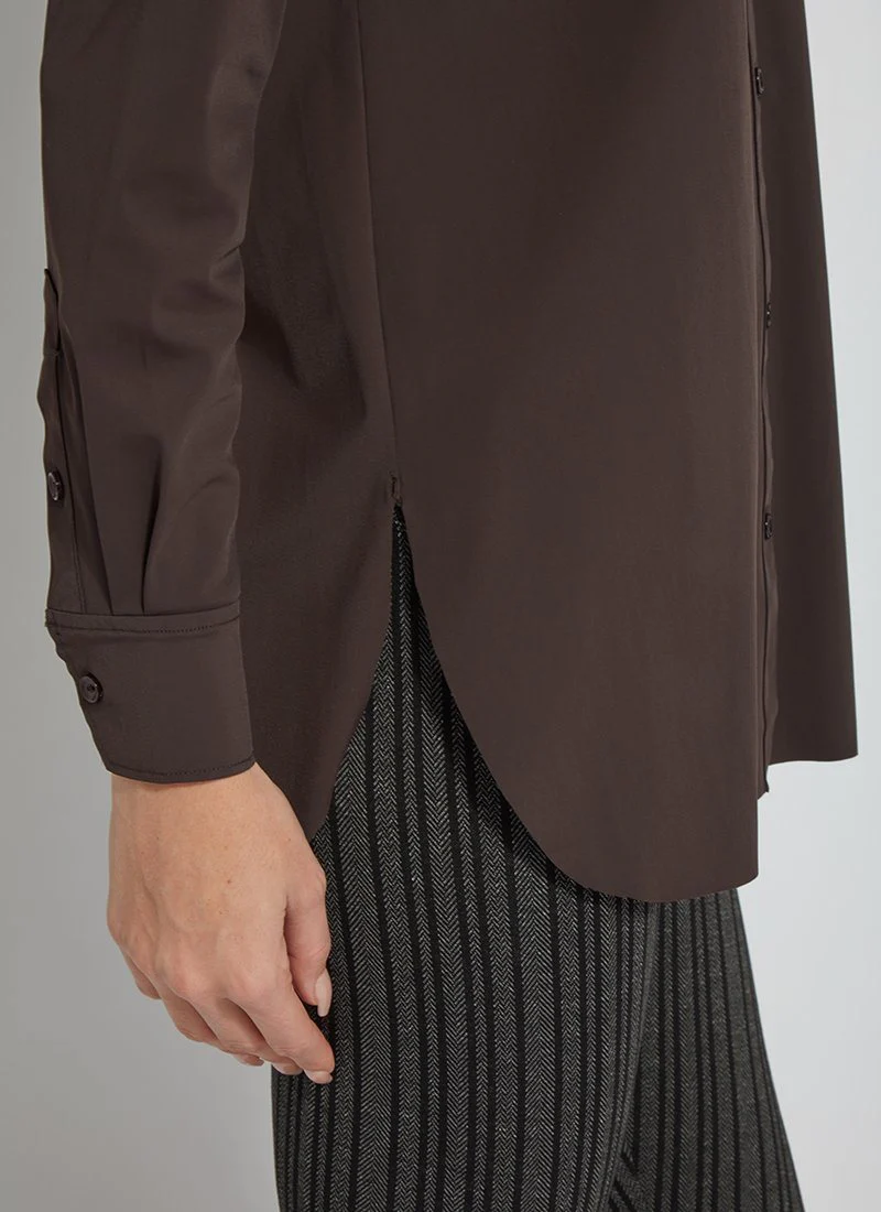 Our customer-favorite Schiffer Button Down is a long-sleeved shirt that tails longer in the back than front and offers a neat, rounded raw-cut hem. Legging friendly and crafted of 4-way stretch Microfiber, the Schiffer delivers easy care and easy wear. Simply wash and hang dry. Flaunt this classic, legging-friendly shirt in multiple ways. Layer like a jacket over our Classic Top, tuck into bootleg jeans, wear under a sweater vest, or layer over leggings. The Schiffer is truly versatile. Machine wash and hang dry.